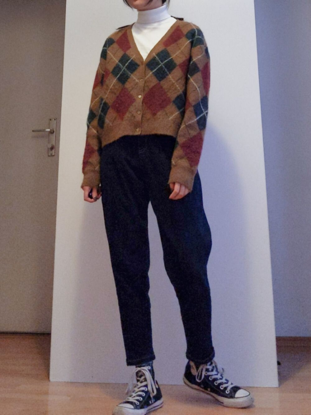 Happy Chinese New Year!🤩 . 💚❤️🧡 也是一件趁打折買的針織外套🥳 這間針織配色蠻特別的✨ 雖然顏色很重但是簡單的格紋圖樣讓他沒這麼難搭! . Instagram n_wearin