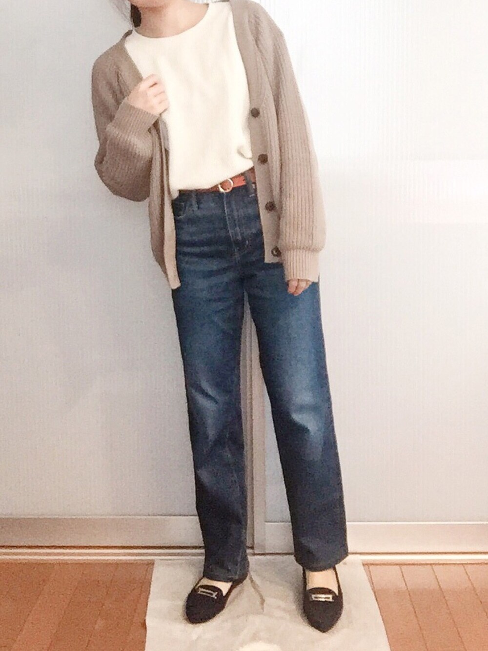 Mioのカーディガン/ボレロ「片畦Vネックラグランニットカーディガン」を使ったコーディネート