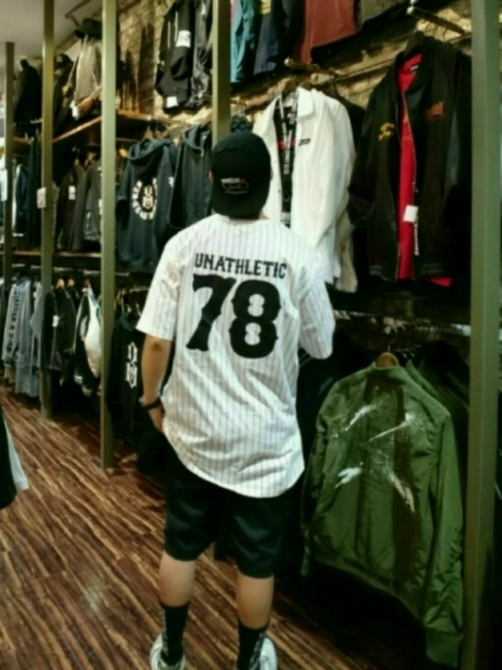 先程のコーチジャケットを脱いでTシャツの後ろ見せたかったので投稿します。 90年代後半アメリカンギャングキッズを意識。 20年前にしてはディッキーズのパンツが細いですがケイラーの靴下と組み合わせるとどうしても今っぽさが出るのでややコンパクトショーツに見えるこのサイズでも良いかな?と思っています。 靴に関しては、スニーカーに疎い僕は本革スウェードにビブラムソールという贅沢仕様と配色がステキだったので一目惚れして買ったやつです。 Tシャツ 3XL ショーツ 32インチ です