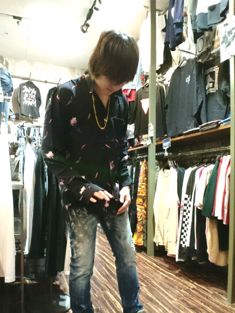 閲覧有り難うございます。 柄シャツコーデです ユルいシャツにピッチピチのデニムで合わせました。 流行りだと淡い色のデニムかなぁと思ったのですが、ロカビリーというかちょっと違う方向性でレトロ感を出してみたかったので(^_^;) 帽子被り忘れてて、帽子跡がえらい事になってます。汗
