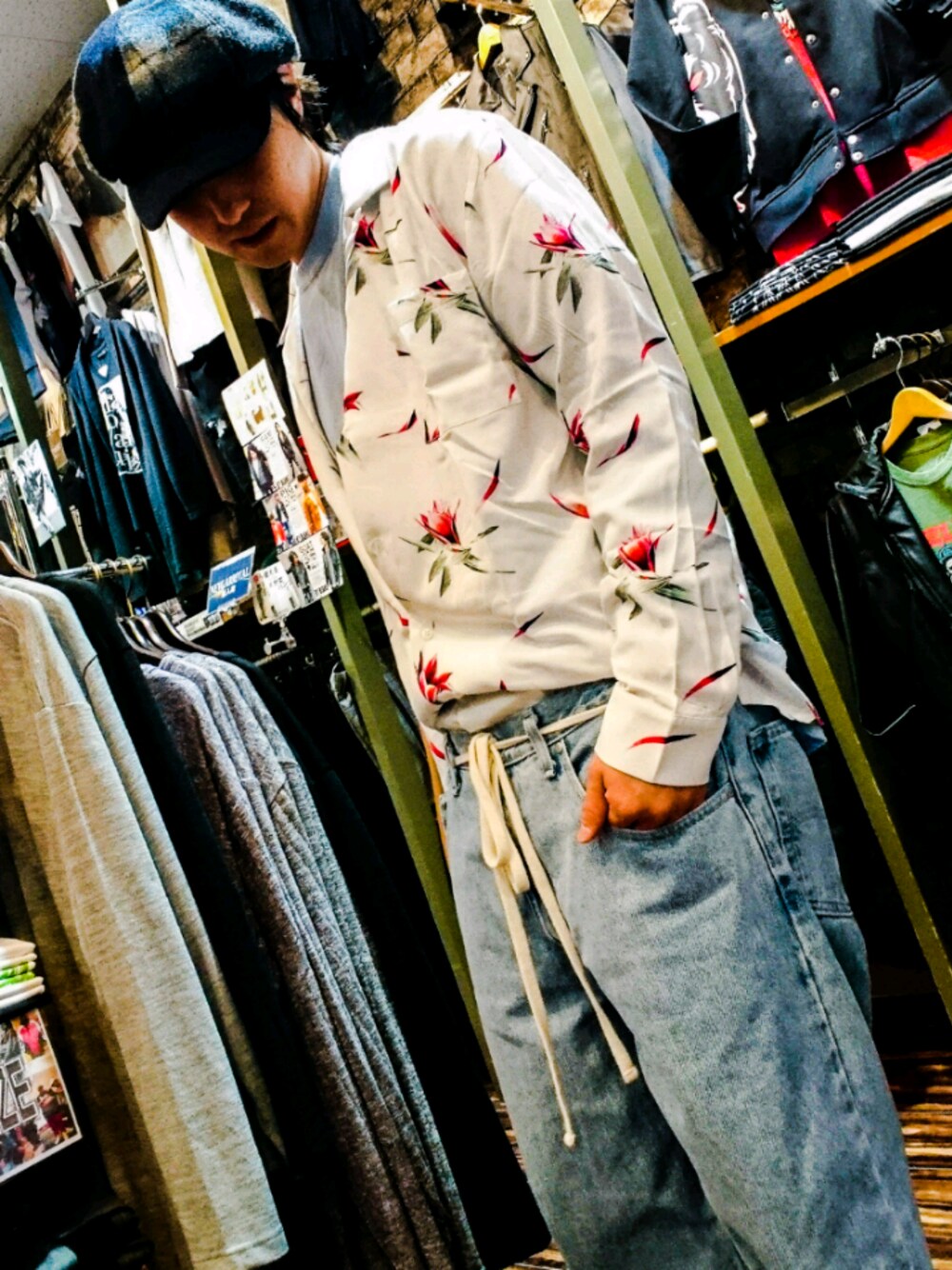 閲覧有り難うございます。 柄シャツ推しです。 キレイなシャツは崩して、 でもパンツイン。 ダボダボパンツをやや上げて穿いて、、 小綺麗で小汚いスタイルです。