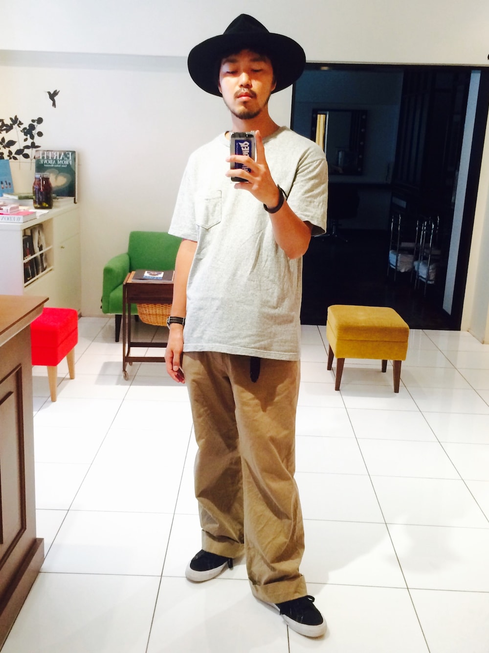 gray×beige 太めのCHINOS 緩めのTEE のラフコーデ 今週もおまちしてます✌︎