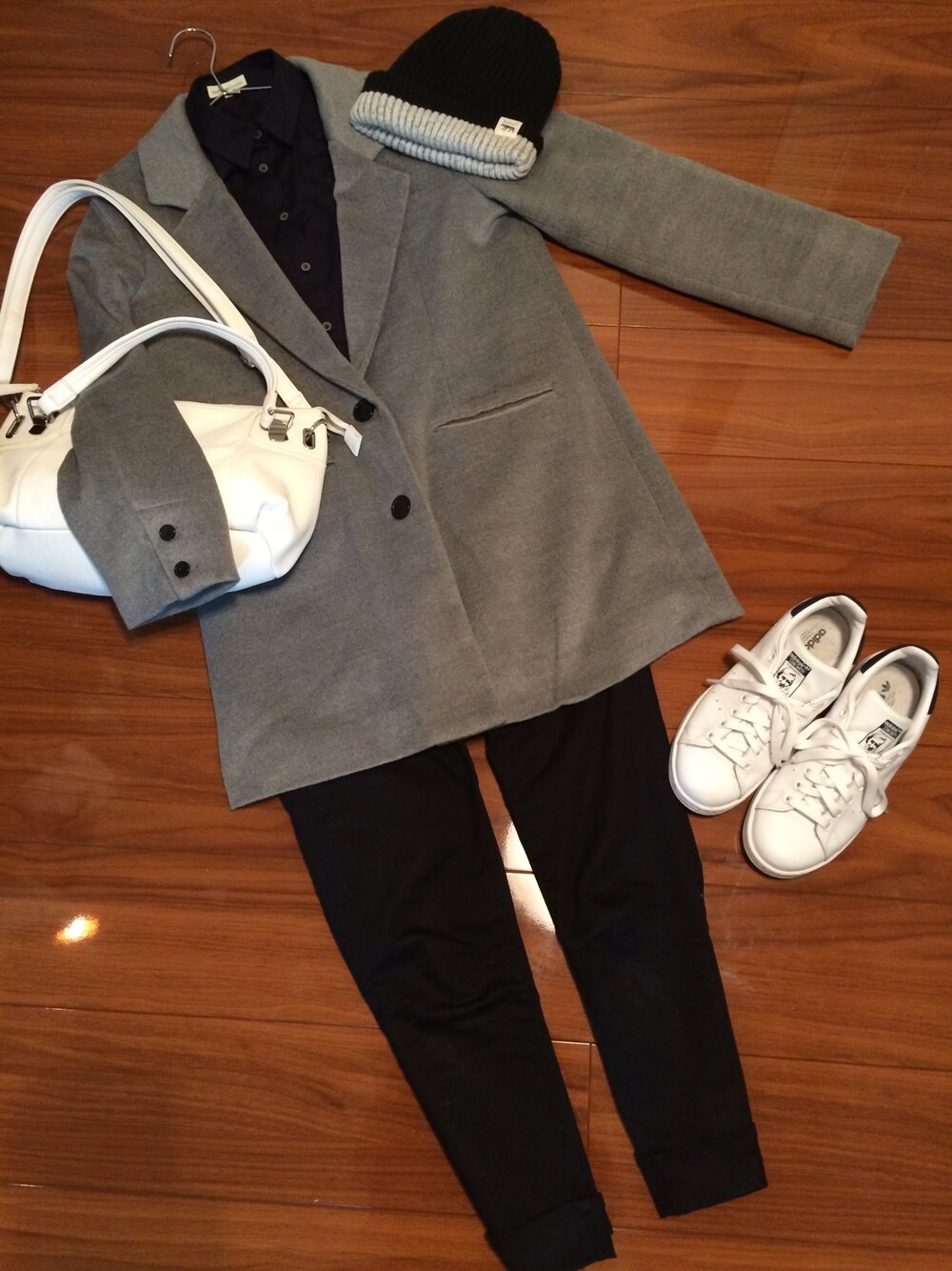 earthの紺シャツ、 ホワイトグレーのチェスターコート、 安い七部丈パンツ、 スタンスミス、 に、合わせた白バッグ。 で、映画「さいはてにて」観てきました。 良かった。