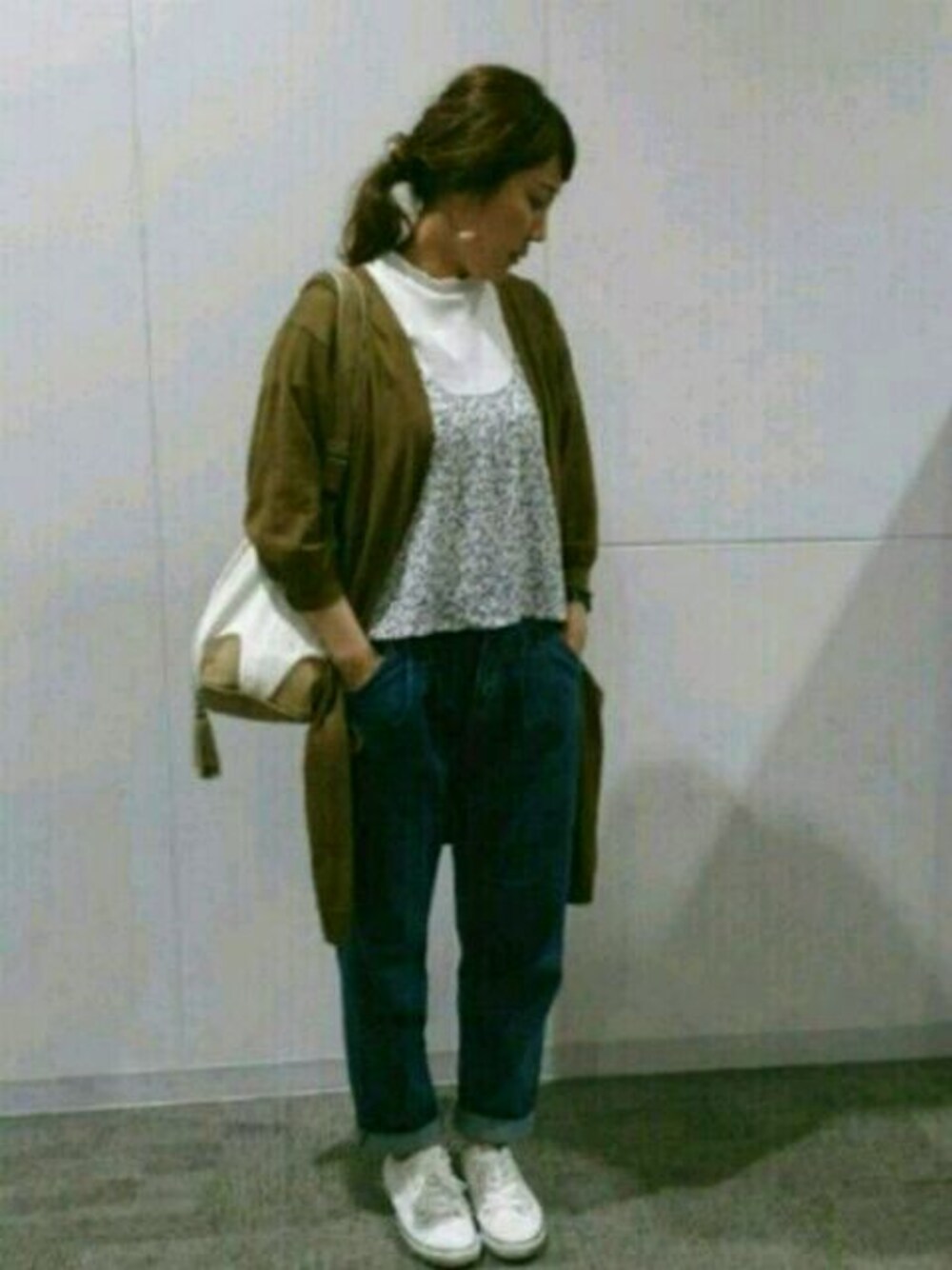 インナーは夏物ですが秋色のロングカーデを羽織って季節感を出しました(*^^*) デニムはシルエットがとってもかわいくて履きやすく合わせやすいのでお気に入りです♪