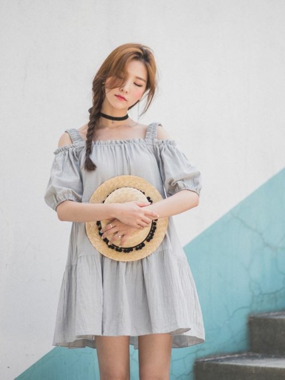ガーリーなシンプルコーデ💘 ストローハット&チョーカーをプラスすると 更におしゃれ度UP✨