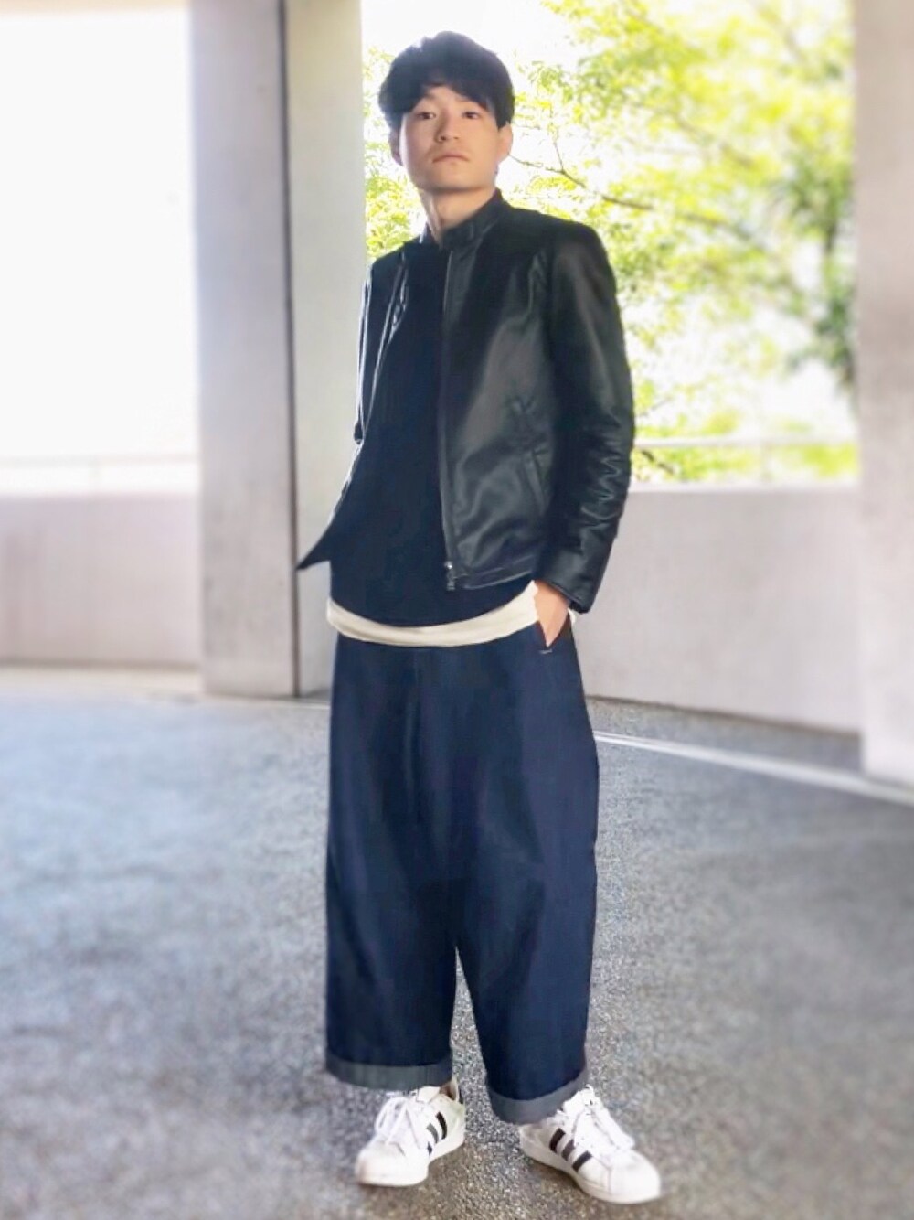 王道なシングルライダースコーデ