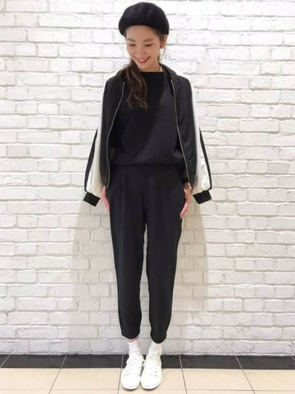 今期一枚は押さえておきたいジョガートラウザーはしなやかな質感で肌触りが良いです☆ ブラックコーデでクールにまとめました◎