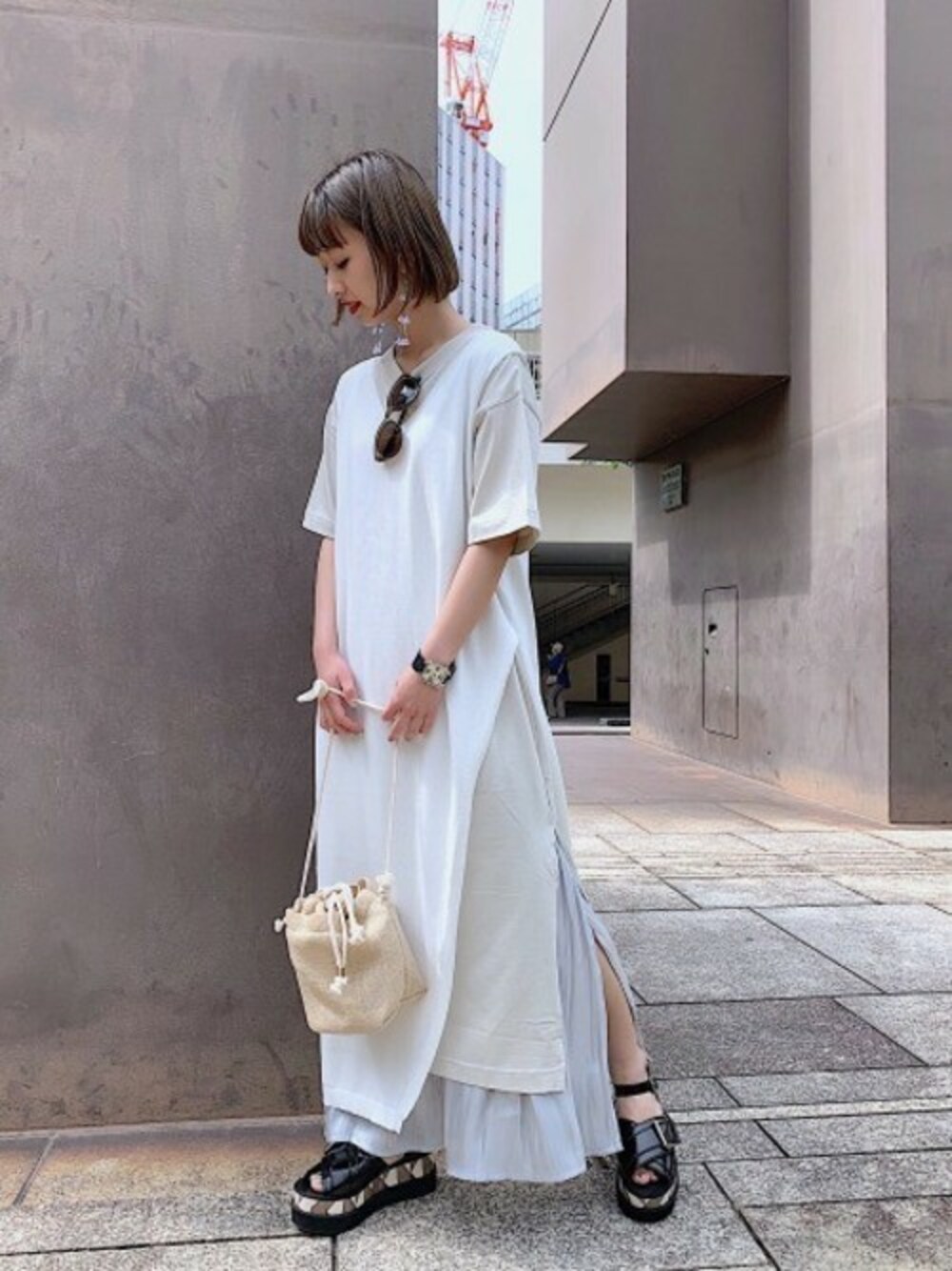 この夏イチオシのレイヤードスタイルはホワイト系の淡いカラーでまとめると柔らかい雰囲気に◎ ザツザイの小物を取り入れて夏らしさをプラスするのがおすすめ♪