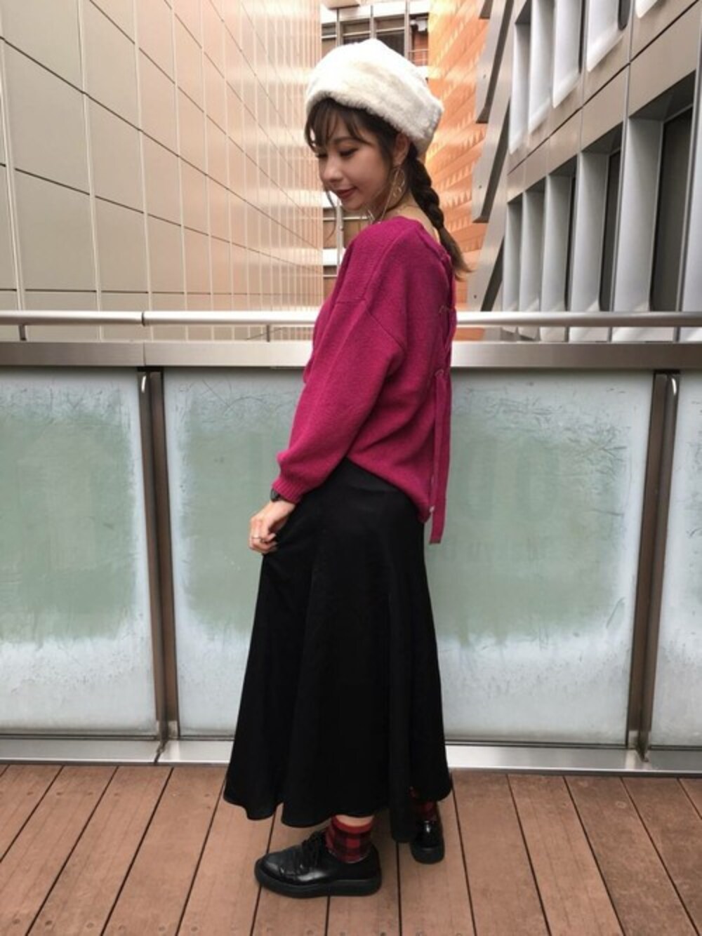 バックのレースアップデザインをポイントに、レディにコーディネート!