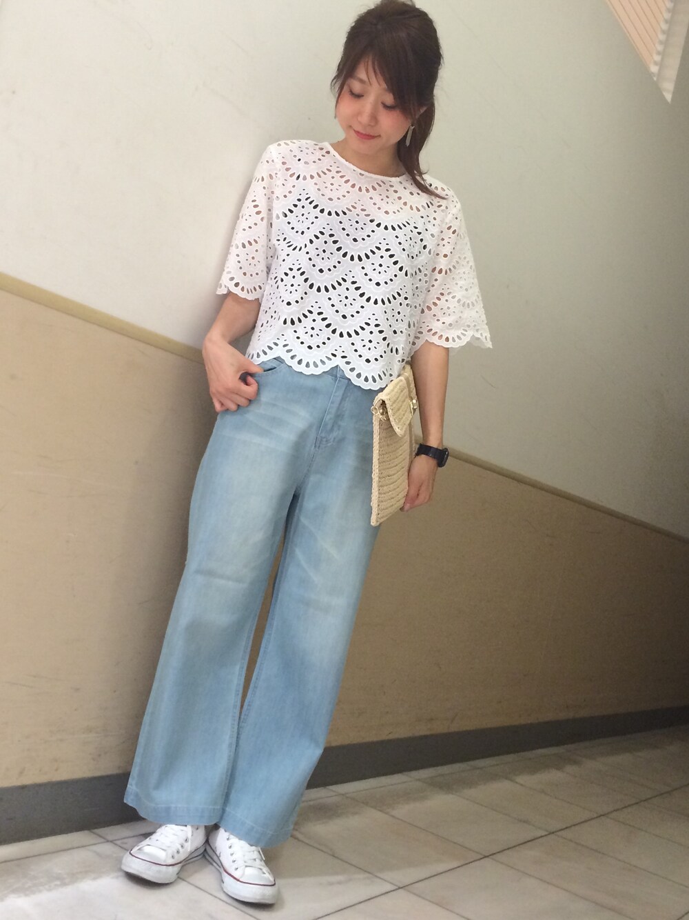 JEANASiS 京橋京阪モールのシャツ/ブラウス「カットワークレースプルオーバーSS/565352」を使ったコーディネート