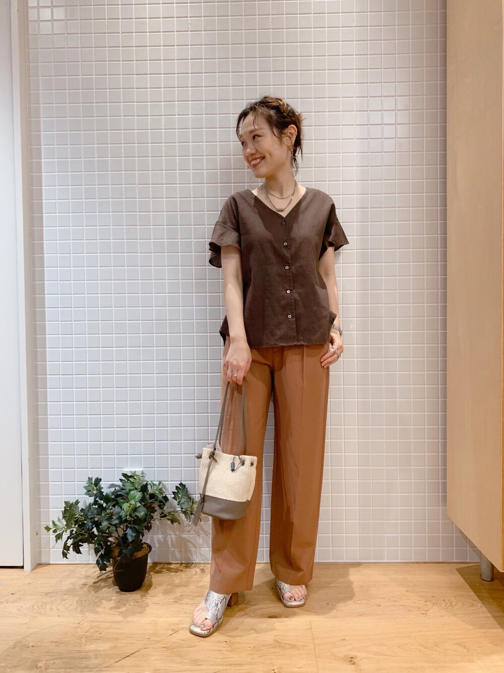 nakamuのシャツ/ブラウス「高機能リネンフレアスリーブブラウス」を使ったコーディネート