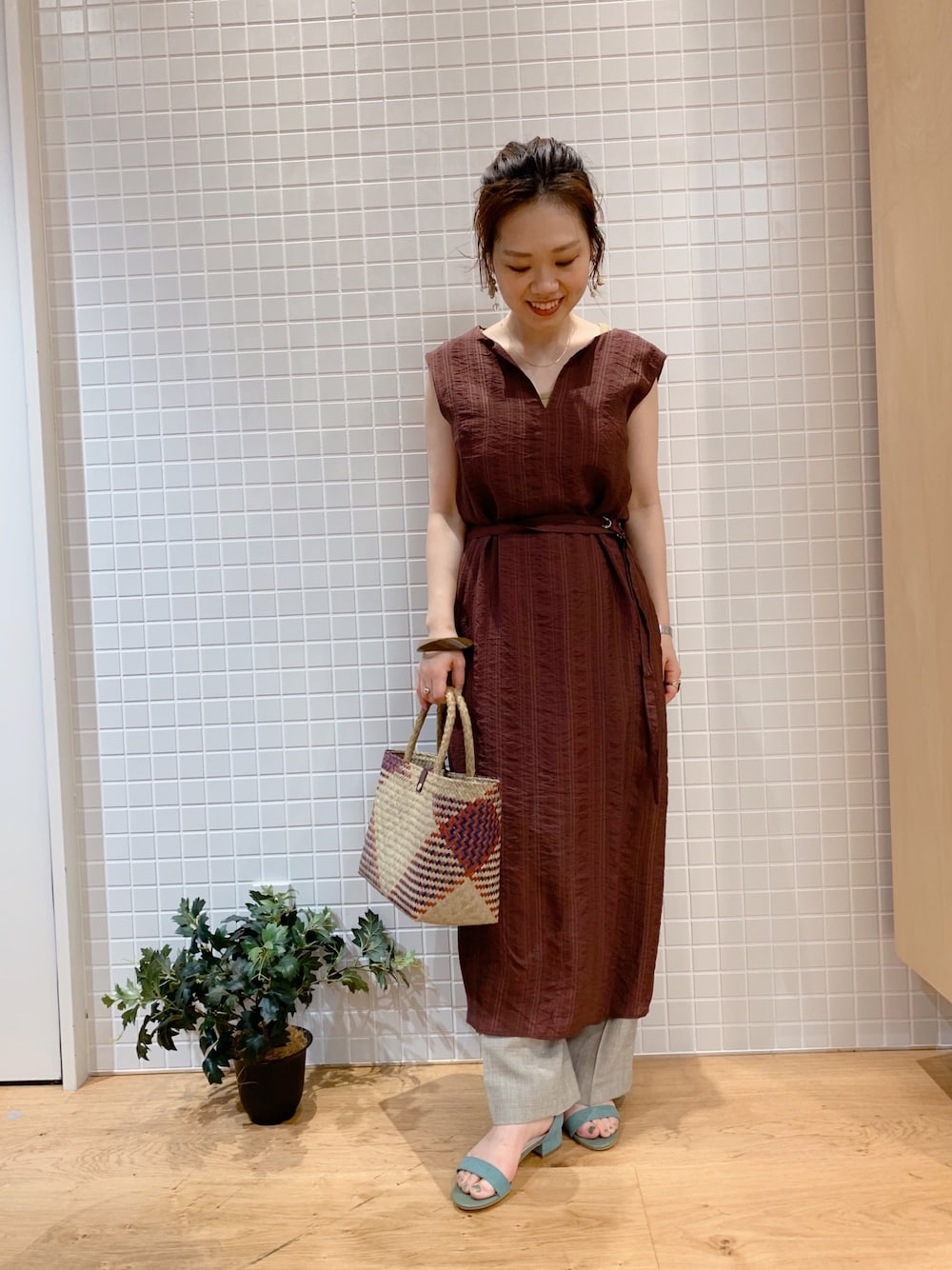 nakamuのワンピース「KBF+ シアーストライプノースリワンピース」を使ったコーディネート