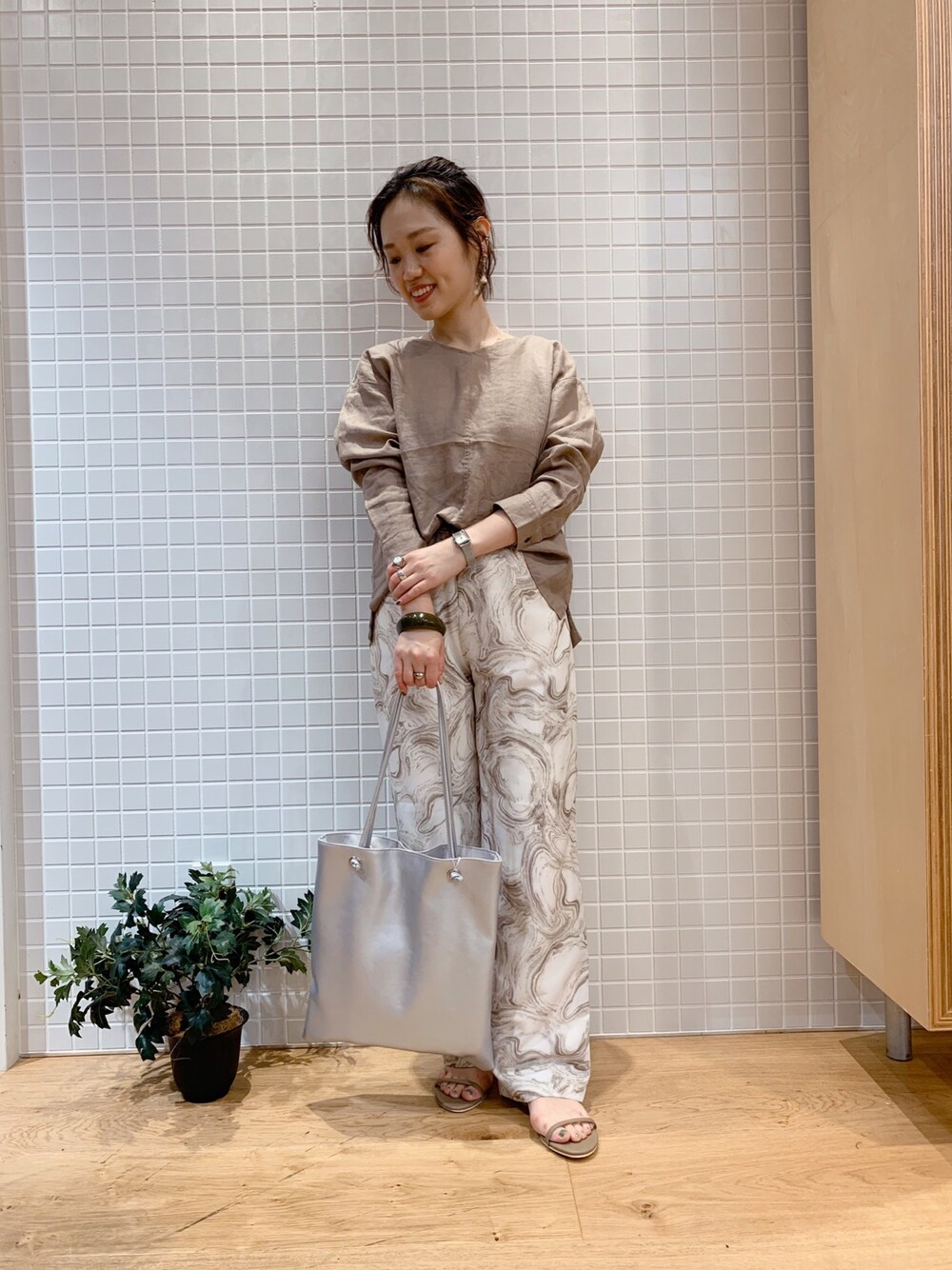 DOORSとKBFのMIXコーデをご紹介♪ 涼し気なリネン100%の生地を使用した ブラウスは、毎年ながら着やすく 顔周りをスッキリとさせてくれる Vネックデザインに◎ ルーズな抜け感はありながらも、 広がりすぎないゆるめのシルエットが 体のラインを拾わず、 袖はカフスで仕立てたりと、 甘さや可愛らしさは控えめな印象を 与えてくれます! 今回の様に、柄物のボトムスを合わせても◎ ぜひ、お試しください!