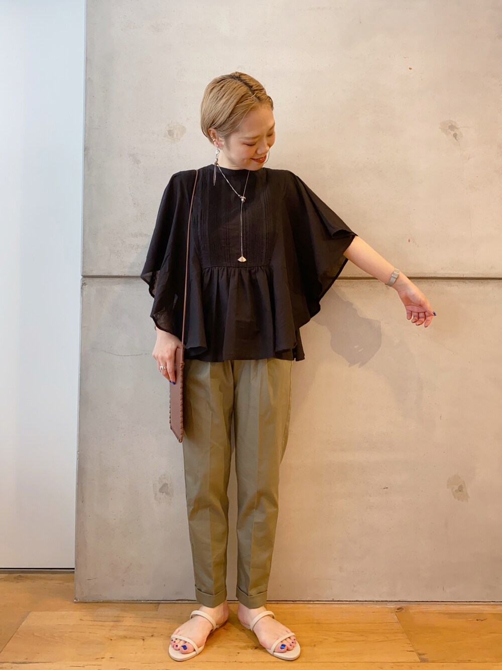nakamuのシャツ/ブラウス「ピンタックバタフライスリーブブラウス」を使ったコーディネート