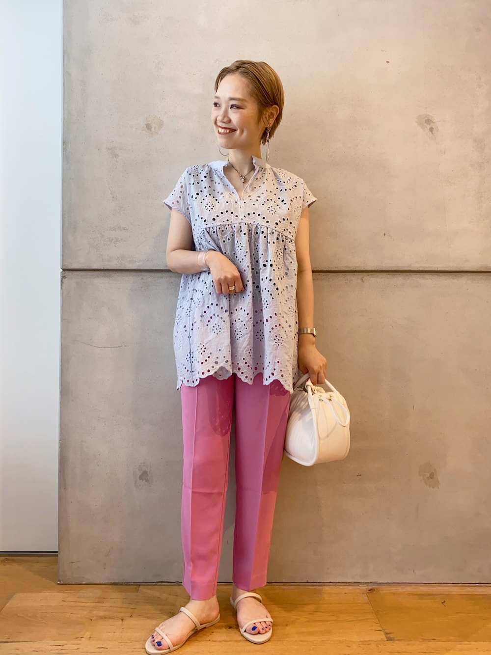 nakamuのその他パンツ「『34サイズ/低身長向けも展開』ジョーゼットテーパードパンツ」を使ったコーディネート