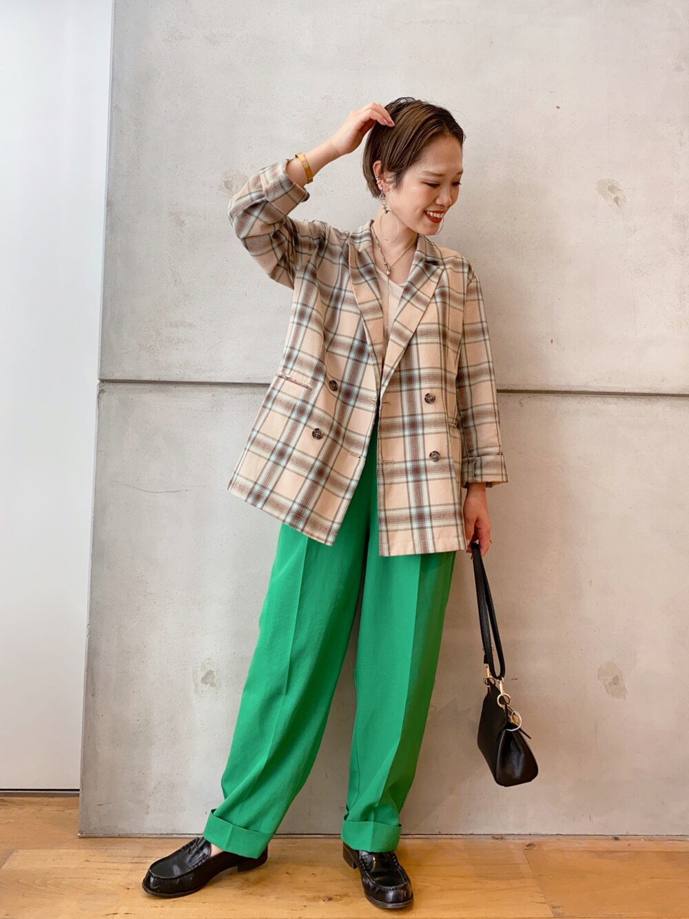 nakamuのテーラードジャケット「リネンMIXチェックジャケット」を使ったコーディネート