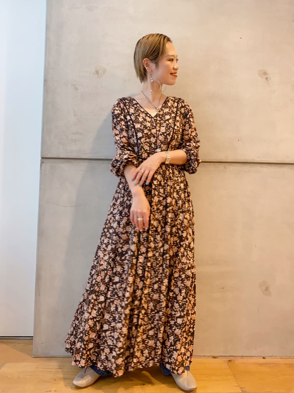 nakamuのワンピース「ボーホーフラワーワンピース」を使ったコーディネート
