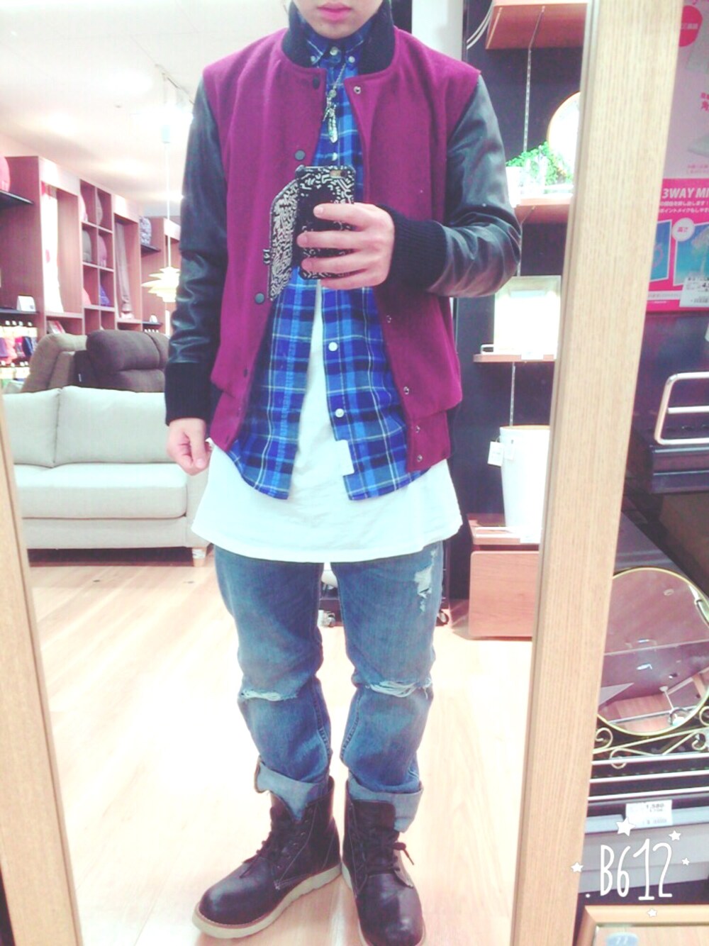 ポイントはシャツのボタン2個閉めです😆😆 ボタンの下を閉めないことによって中のロンTがチラ見されて3段レイヤードになります👏👏 ダメージジーンズとの相性も抜群😎😎