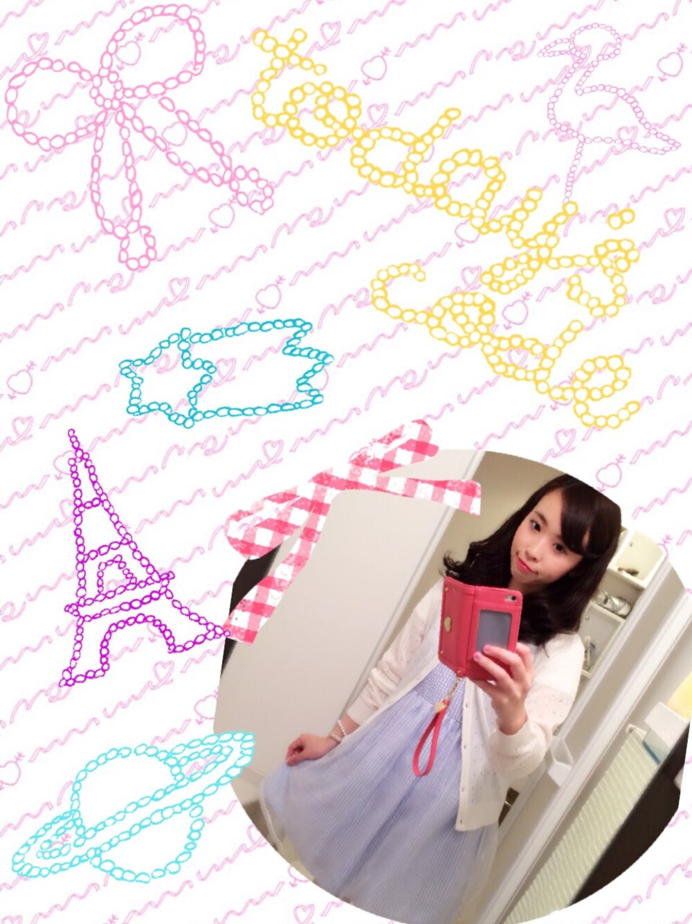 ギンガムチェックワンピースに白カーディガン羽織りました♡