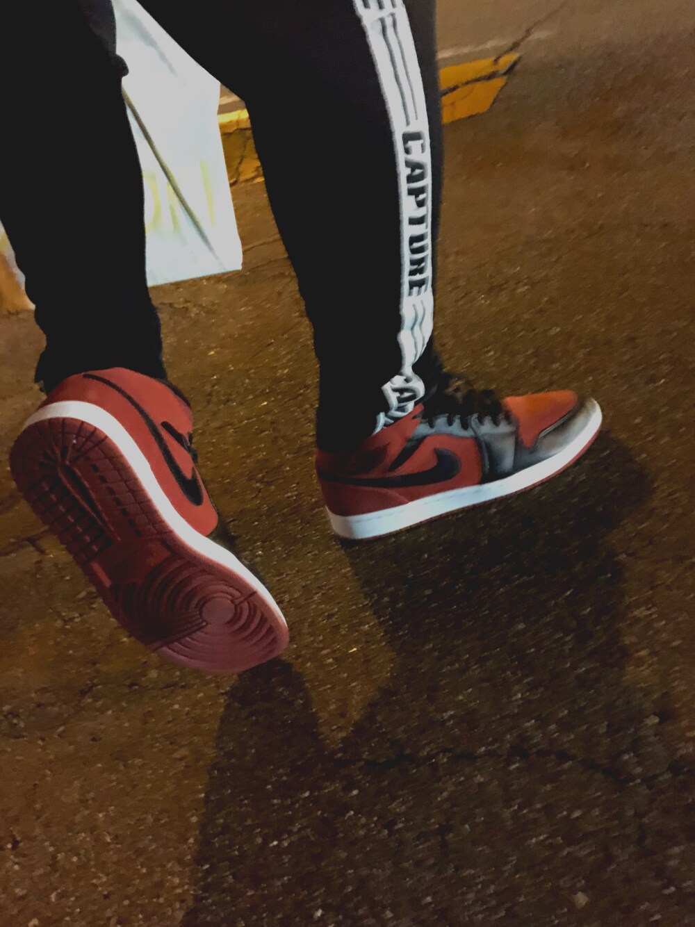 RIUTAMARUのスニーカー「NIKE AIR JORDAN 1 MID (GYM RED/BLACK-WHITE) 【SP】」を使ったコーディネート