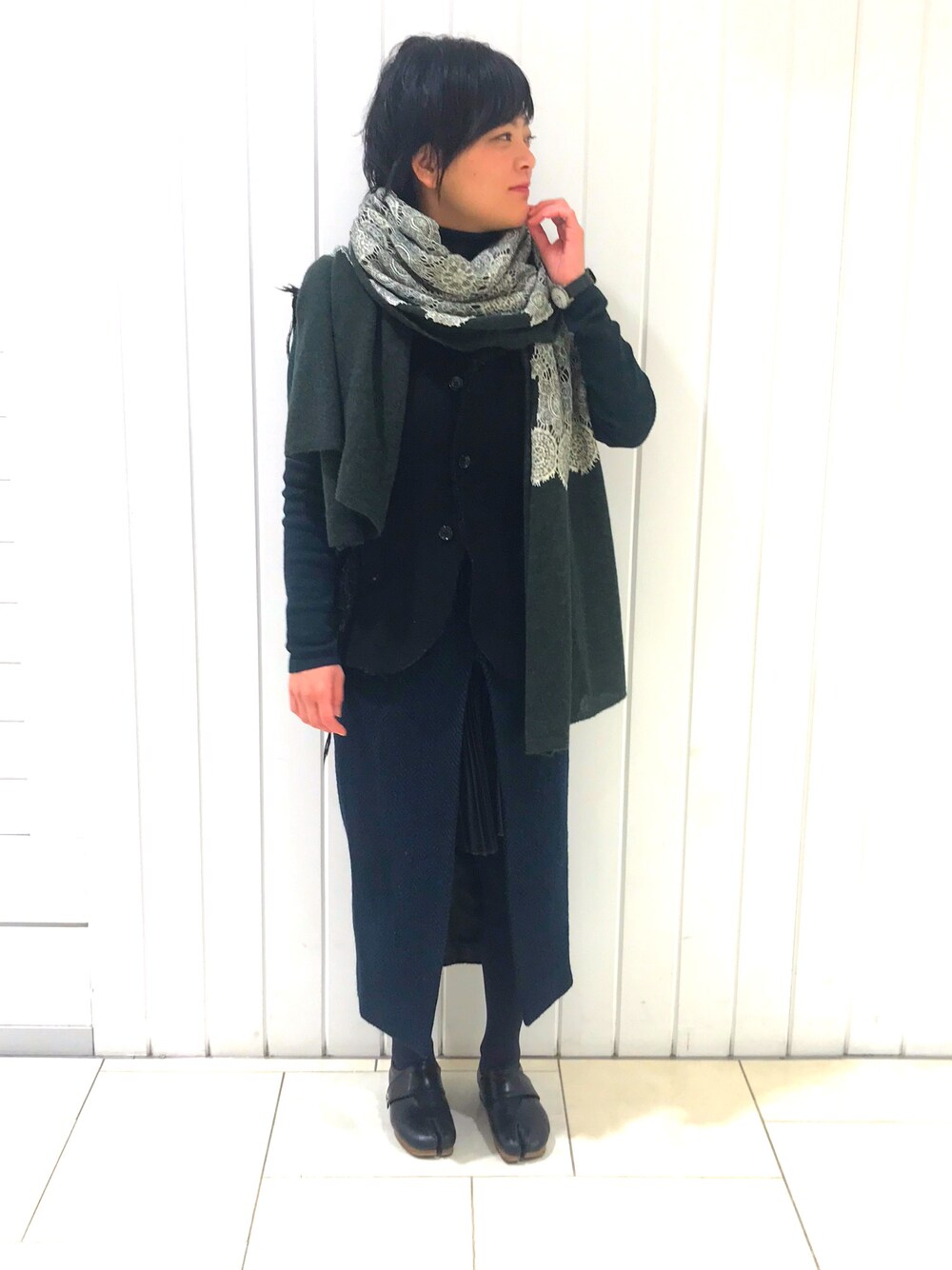 今年一年間での1番の思い出は・・と聞いたら、 メガネを落とした👓、財布を落とした👛、ライダース(革ジャン)を落とした🧥、ストール落とした🧣 って落としすぎの平尾です。 でも、皆様との出会いを拾いました・・・ さて、今日はgreenとblackをメインにしたコーデです。 最近のお気に入りはこの靴とストール!!