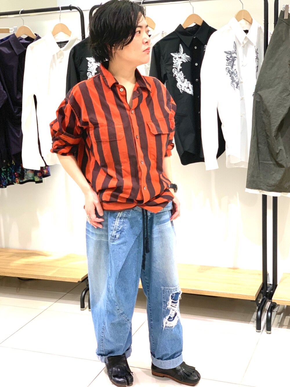 外は寒いけど店内は暑い・・ 一足先に春の装い。 やっぱり春はいいですねー! デニムと靴にアクセントを。