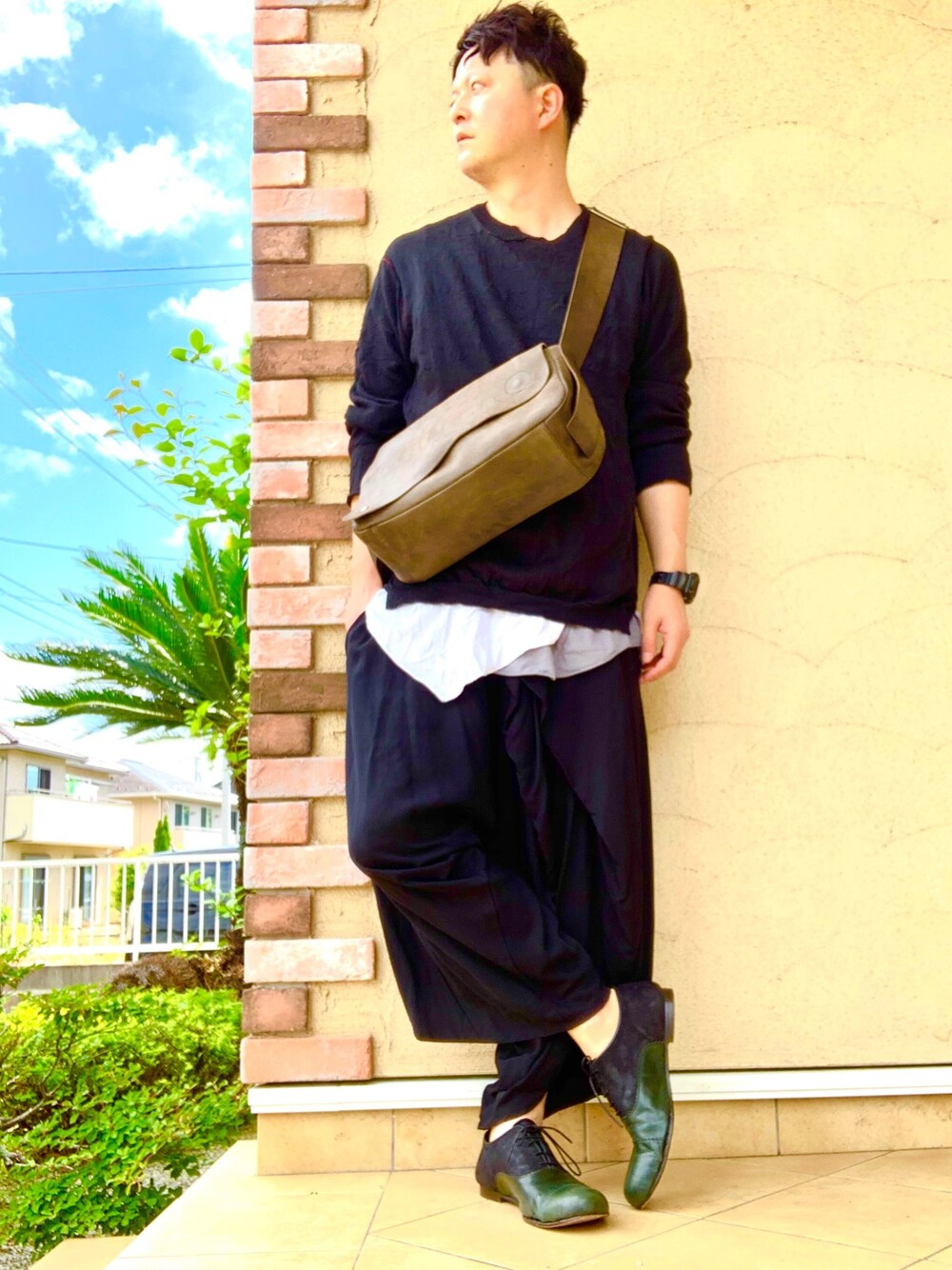 モノトーンに重ね着で色をちょっと見せました。 パンツはワイドで風が通るように。 ニットも風を通してくれるので心地よい。
