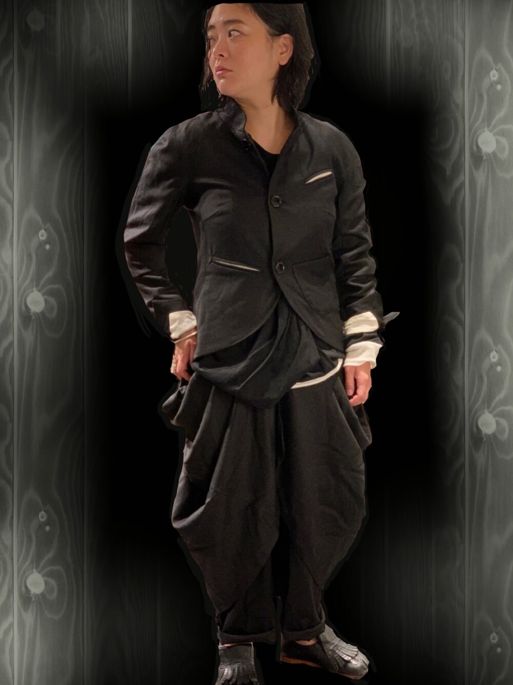 上下のセットアップコーディネート 黒でまとめてみました。 所々白を出してコントラストに