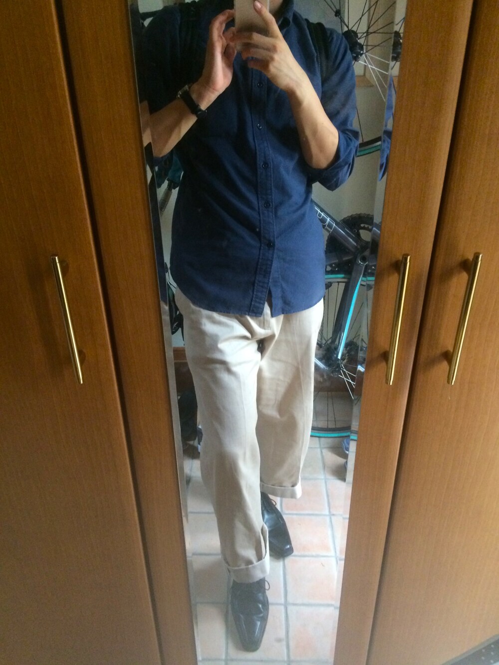 ユニクロのオックスフォードシャツとアーバンリサーチのワイドパンツ センタープリーツがあるから鼻が長めの革靴と合わせやすいかも(?) 新宿の店員さん選ぶの手伝ってくれてありがとう😊