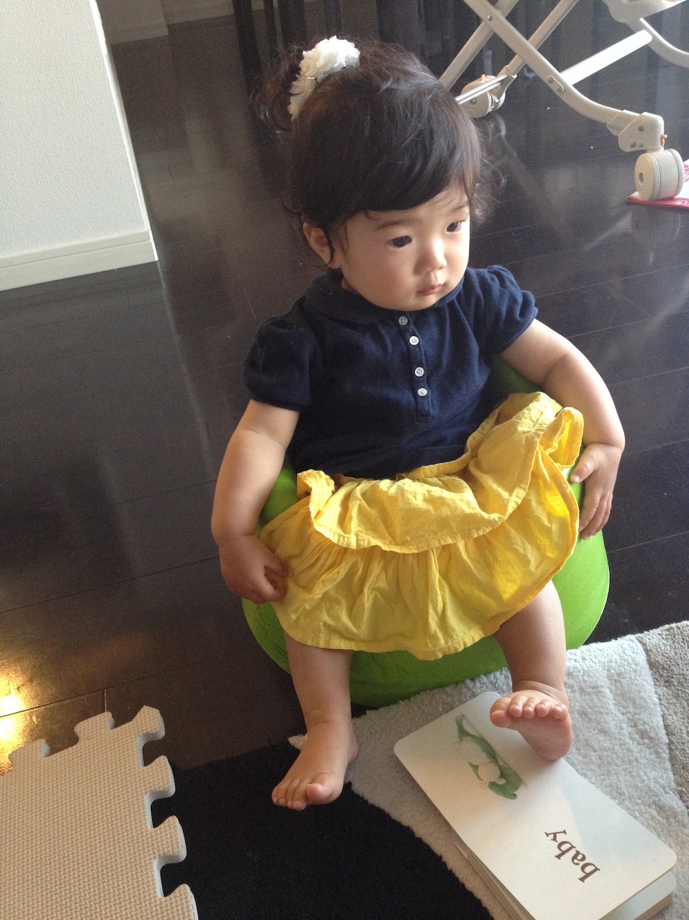 バンボに座ってテレビ見るのがお気に入り ポロシャツ✳︎GINZA スカート✳︎プチバトー