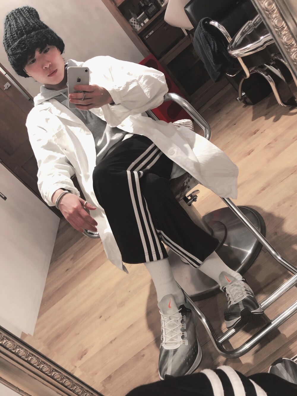 白衣美容師、まだやっとります。 たまに暑くて脱ぐけど!🤣 ZARAで去年買ったニット帽 ボリューム感ありまくりなんだけど だれか合わせ方教えてください🤷♀️