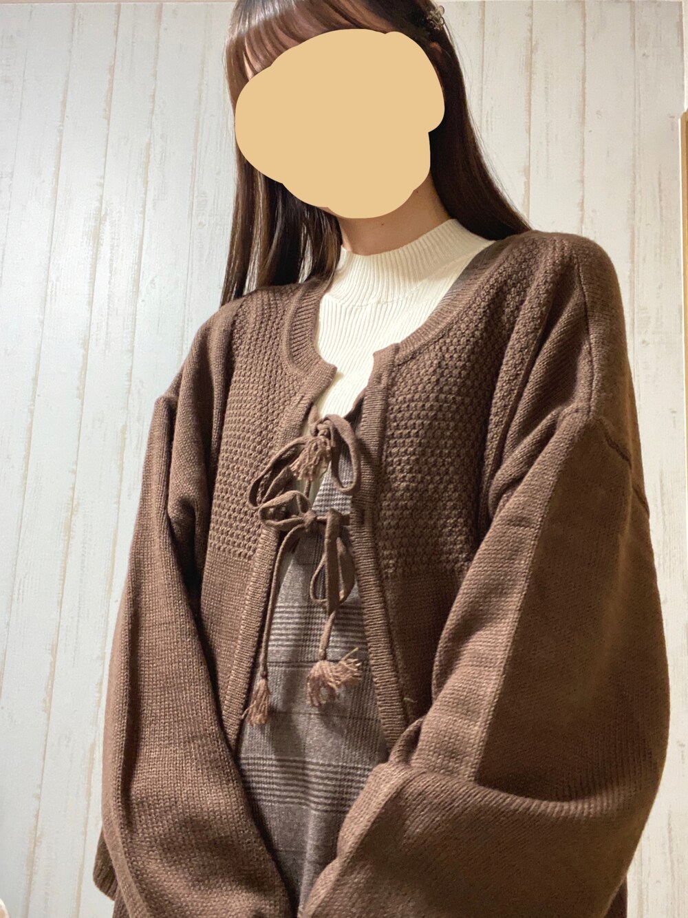 みみのカーディガン/ボレロ「リボン前後2WAYニットカーディガン」を使ったコーディネート