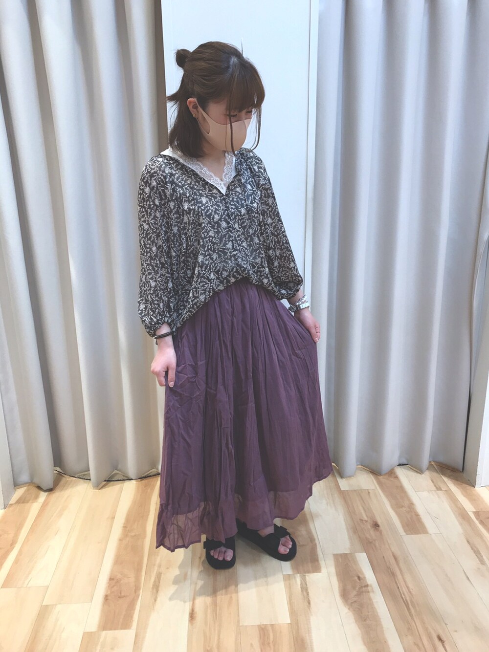 こんにちは🌞 皆様お久しぶりです🙇♀️ 本日はSamansa Mos2 blueコーデです✨ トップスはお花柄がかわいい、夏らしいシースルー感のあるブラウスです! 透け感があって大人っぽく着こなせます👚 スカートはふんわりとした形で風が吹くと シンデレラみたいになりますよ✨👸 ただいま、夏のセールを行っております! 全ての商品が60%off以下になっていてとてもお得🉐 ぜひ店頭でご覧ください♪