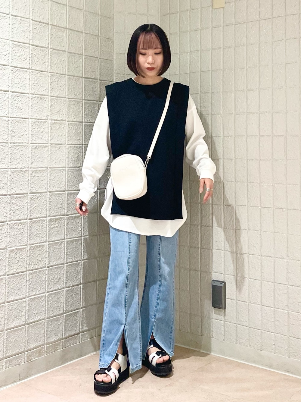 モードカジュアルコーデ☆ ベストのモードカットが可愛い!! お気に入りすぎて登場頻度多めのフレアスリットと合わせました!