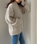 jura(PAGEBOY 浜松市野イオンモール)のニット/セーター「リーフケーブルクループルオーバー / ボリューム袖 / オーバーサイズ」を使ったコーディネート