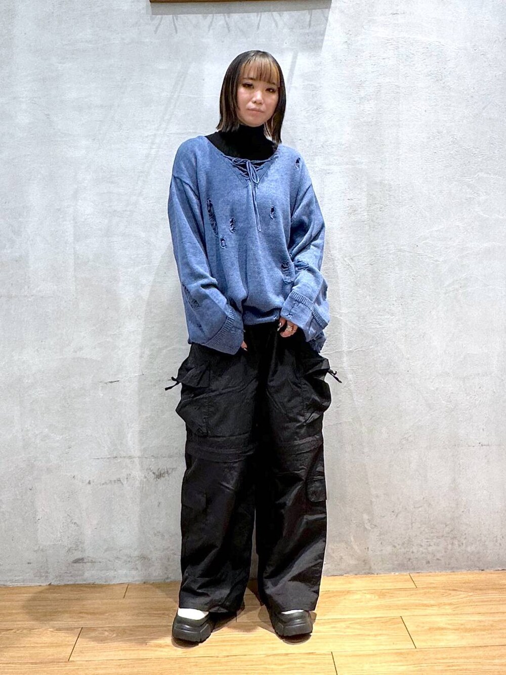 jura(PAGEBOY 浜松市野イオンモール)のニット/セーター「レースUPユルダメージニット」を使ったコーディネート