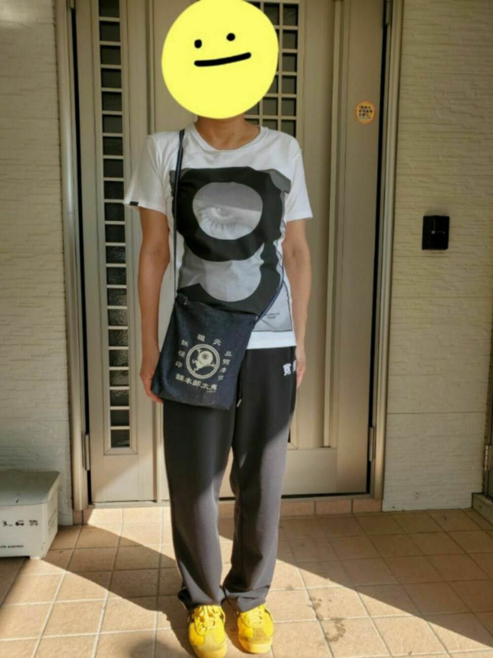 今日は朝早く起きてお墓参りに行ってきました。目玉親父のショルダーバッグはデニム素材で可愛くてお気に入りです😊オニヅカタアタガーは大好きなイエロー💛目立ちますがこちらもお気に入りです😁寛斎さんのパンツは履きやすくてカッコいいです😍