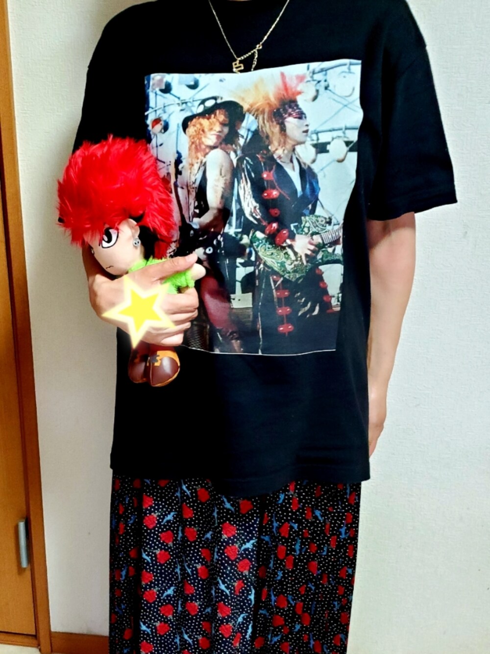 HIDE&TAIJITシャツとGUとUNDERCOVERのコラボのスカート合わせてみました。hideちゃんぬいぐるみと合わせてみました😁