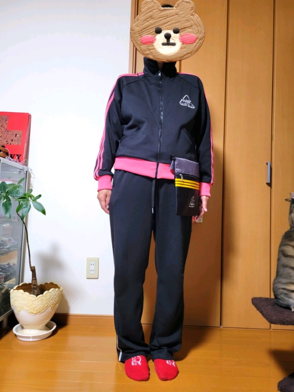 大好きなhideちゃんジャージとサコッシュ。hideジャージはブラックにピンクのラインが気に入ってます💖