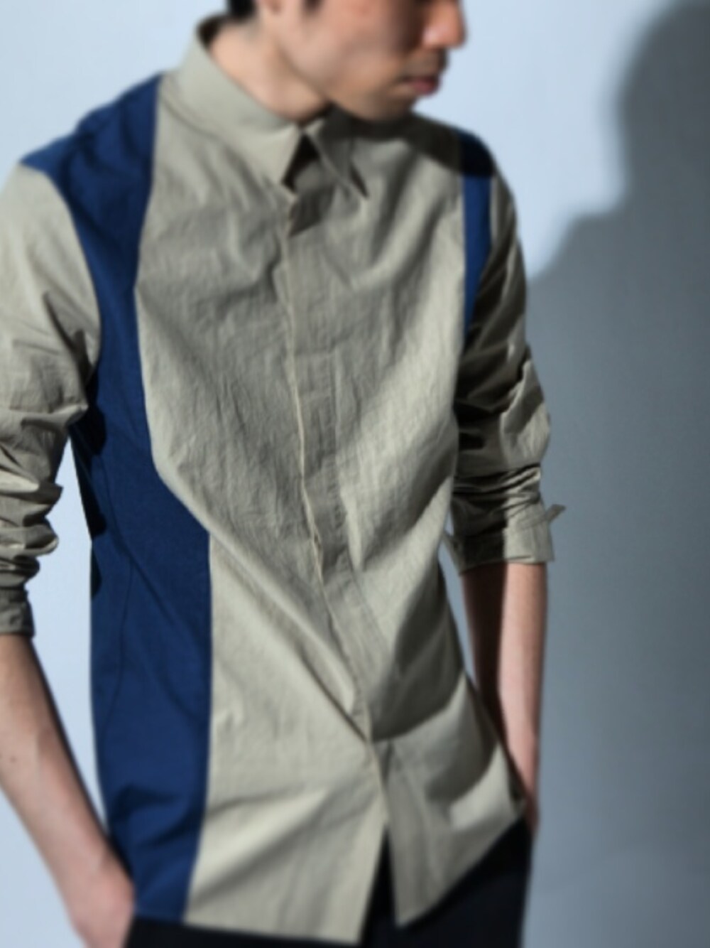 rood バイカラーシャツ 樹脂によるシワ加工のタイプライターシャツ