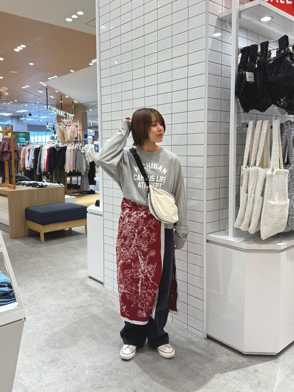 J U R I(CIAOPANIC TYPY)のニット/セーター「【ユニセックス】ビックシルエットカレッジロゴプリントニット」を使ったコーディネート