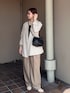 juri(russet)のショルダーバッグ「レザー巾着4WAYショルダーバッグ」を使ったコーディネート