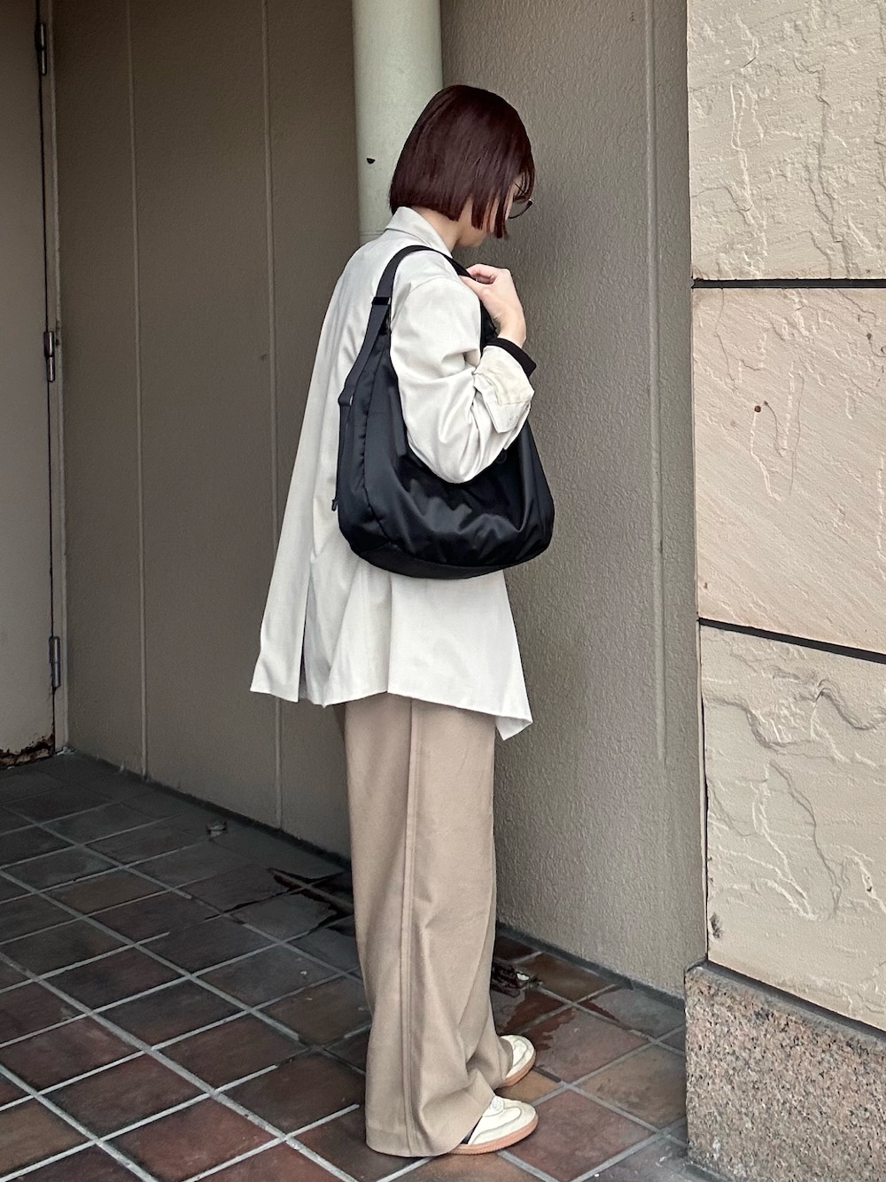 愛用中のナイロンビッグラウンドショルダー カジュアル、時々きれいめカジュアル派 の私にはぴったりなバッグです♩ 光沢感のあるナイロン素材で重たい印象になりづらいです! 夏でもオールシーズン使えますよ(^^)