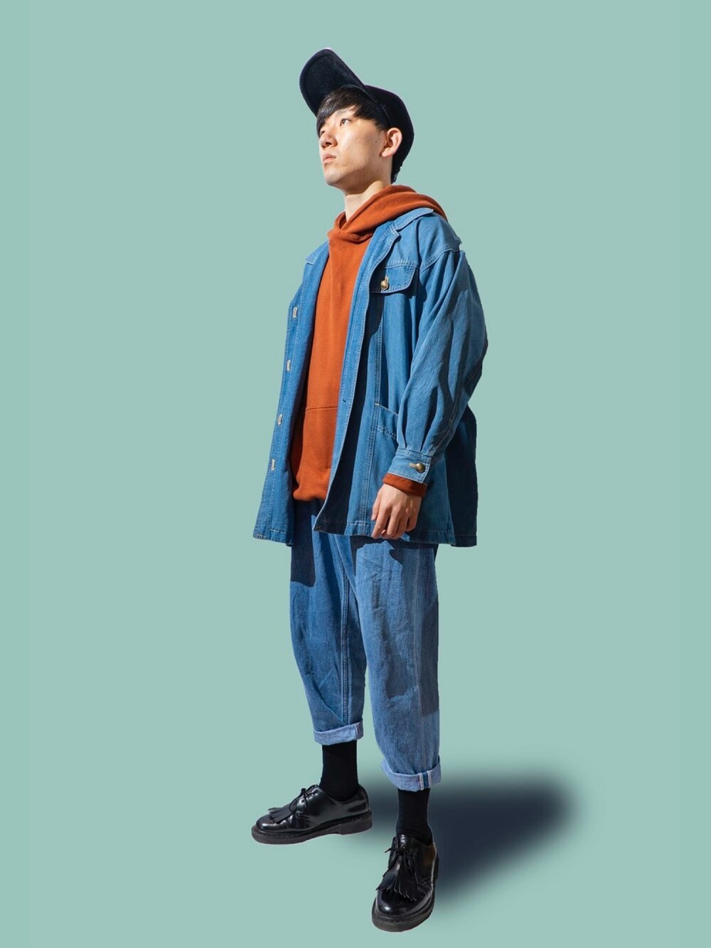 キャップ:MYNE ジャケット:vintage:柏の古着屋:2000円 パーカー:vintage:2ndstreet:3500円 パンツ:Freaks store:2ndstreet:1300円 シューズ:Dr.martine