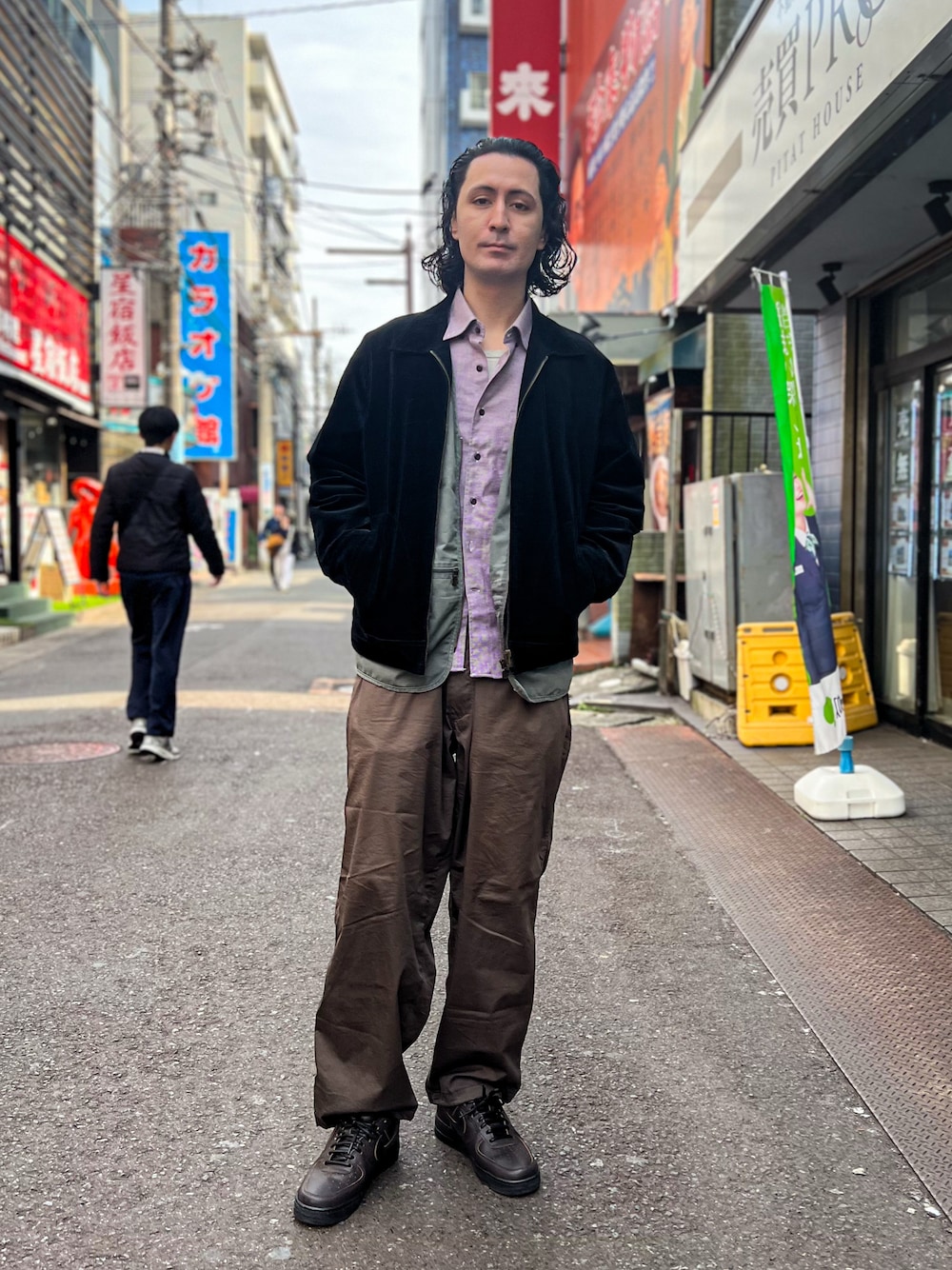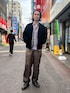 お爺ちゃんのタンスに眠っていた 薄赤のネルシャツを拝借 写真だと分かりづらいんですが中はフィッシングベストを着用 ワイドパンツで合わせてカジュアルな雰囲気に仕上げました🎣