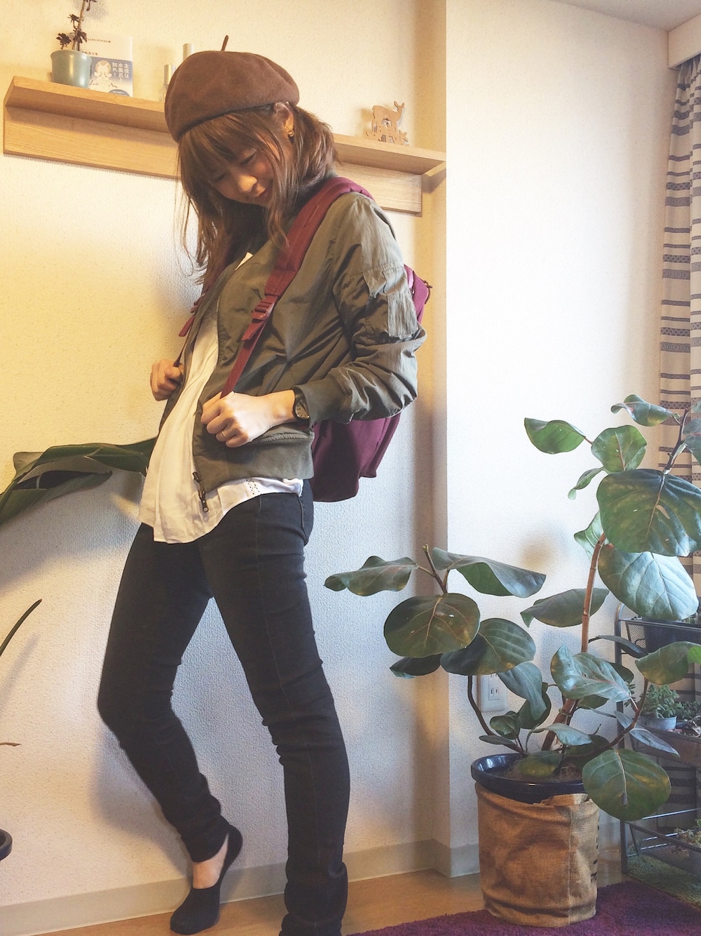 ジャケット着ましょう、 風が吹くとちょいとまだ肌寒いからね。 MA-1を脱いだら 漫画家になってしまうから ベレー帽も一緒に脱ごう。