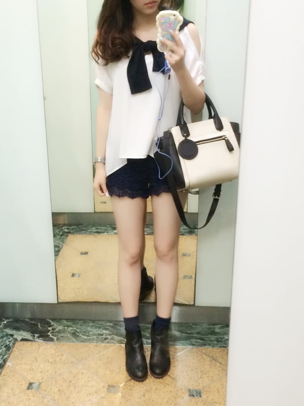 Feminine boyish style ♡ Lady top x lace pants x boyish boots