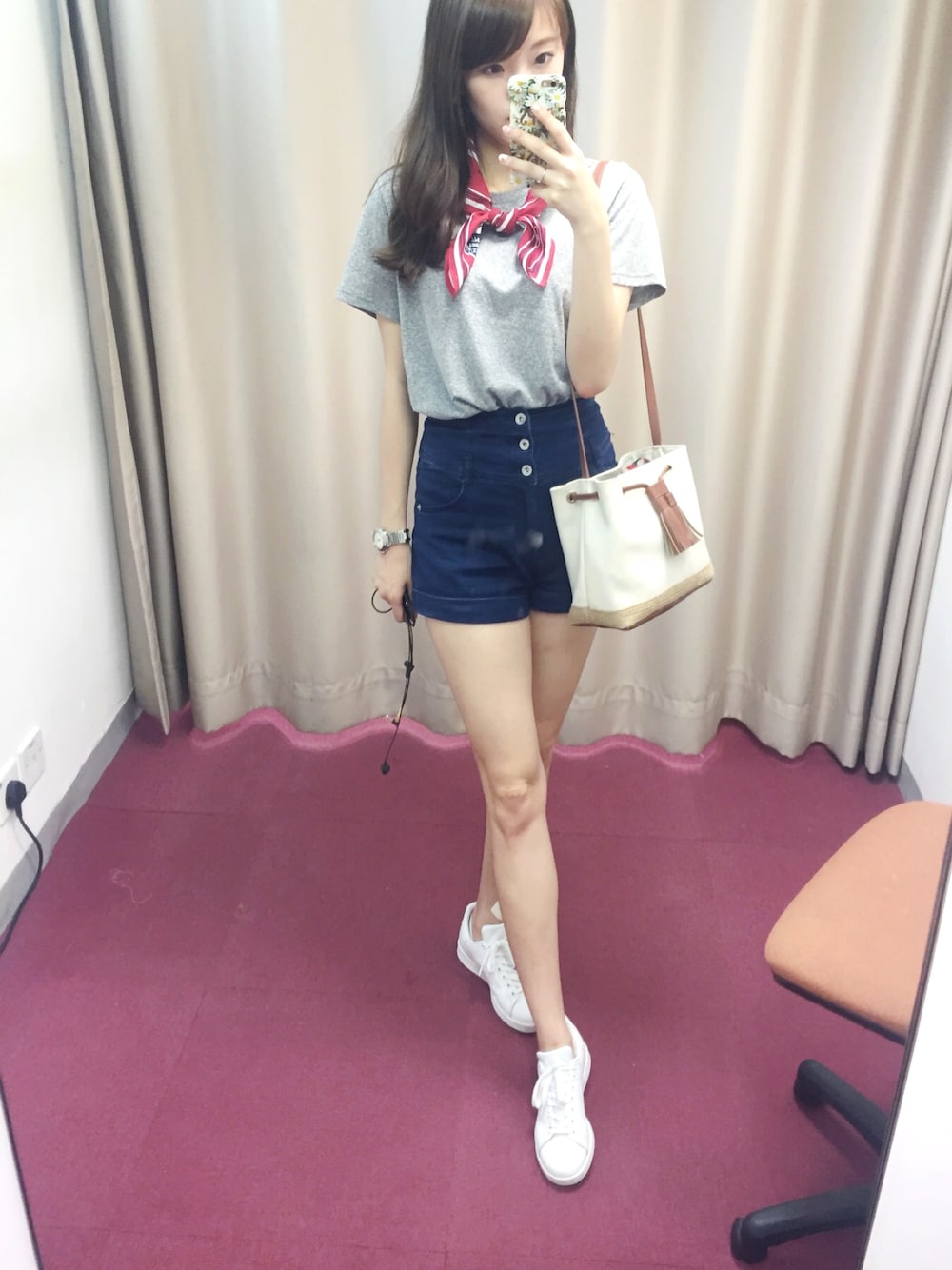 スカーフx tシャツ ゆるゆるコーデ♡