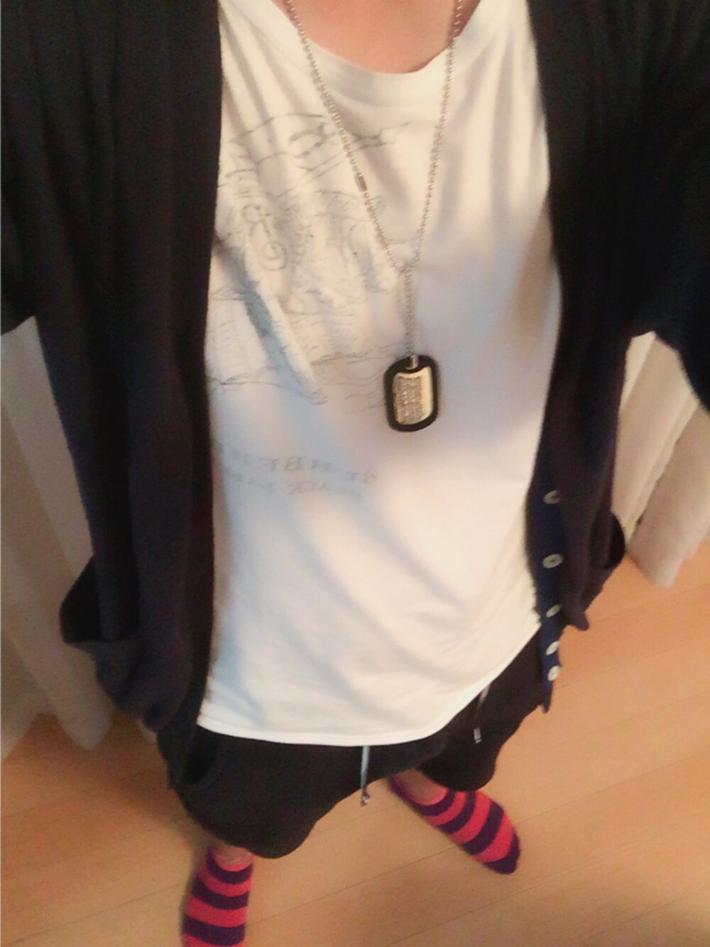 ホワイト系のトップスを着用したメンズの夏コーディネートの1枚目の写真