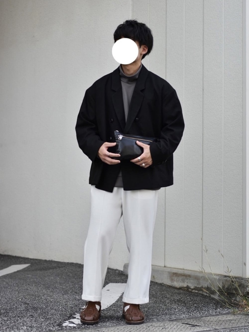 【今冬のファッションの楽しみ方】 グレーとブラックの首元のグラデーションが 落ち着いた冬感を演出📹 今年の白パンツのトレンドは、冬の重たいトーンを 上品に明るくしてくれる優秀なアイテム✨ 今年のトレンドは、セットアップ、ペールトーン、 くすみカラー、白パンツ、ロングコートと キレイめなカテゴリーが多いので、 キレイめを意識するスタイリングも例年以上に トレンドライクに楽しめる1つの方法かと。 オーバーサイズも掛け合わせるとより今っぽく🤔 ・coordinate オーバーWテーラードジャケット ダブルフェイスビッグオフタートルプルオーバー × 白スラックス レザーグルカサンダル Instagramもよかったら覗いてみて下さい😊 →wear.jukiya